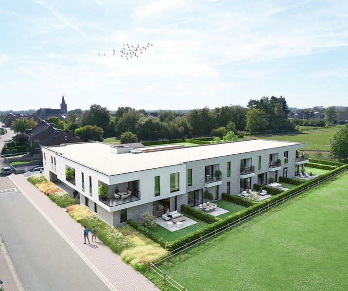 - De gelijkvloerse appartementen beschikken over een terras van 16m², alsook een aangrenzende tuinzone van 31m² – 141m².