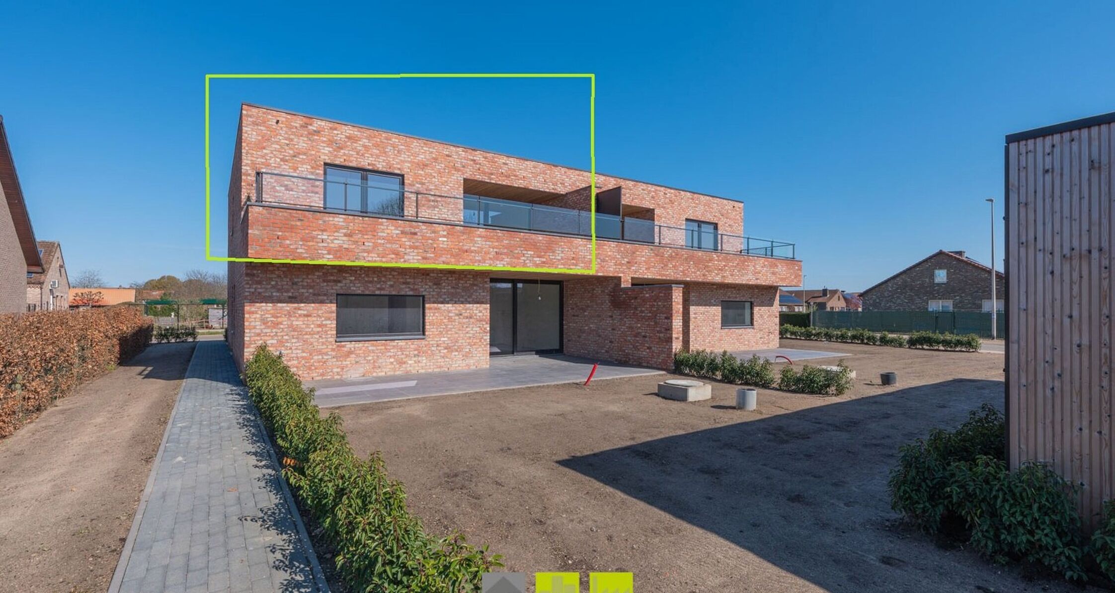 - Buitenaanleg: de tuinen worden aangelegd en ingezaaid met gras.