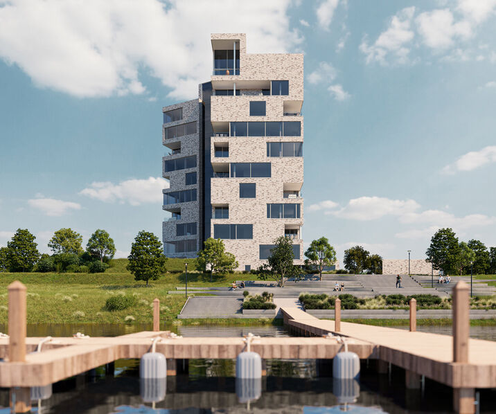 De eerste fase van Nova Eycke – nu in verkoop – bestaat uit 18 ruime, luxueus afgewerkte appartementen, elk met grote leefterrassen en een adembenemend 330° uitzicht over de Maas, het natuurgebied, de nieuwe passanthaven én het charmante stadscentrum van Maaseik.