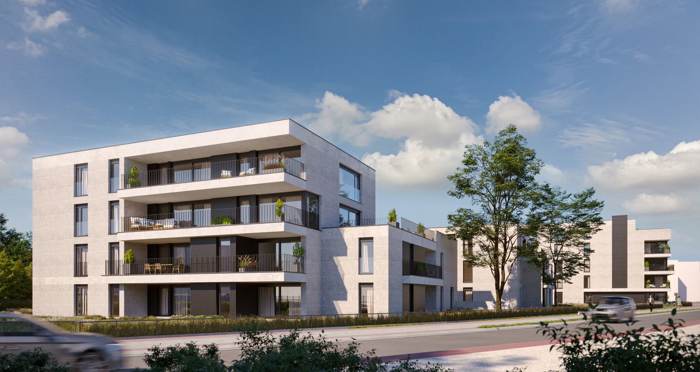 Er werd gekozen voor een diversiteit aan appartementen met ook kleinere woonoppervlaktes zodat iedereen zijn gading kan vinden. De 6 aparte woonblokken zorgen voor voldoende rust & privacy en vormen een mooi harmonieus geheel.