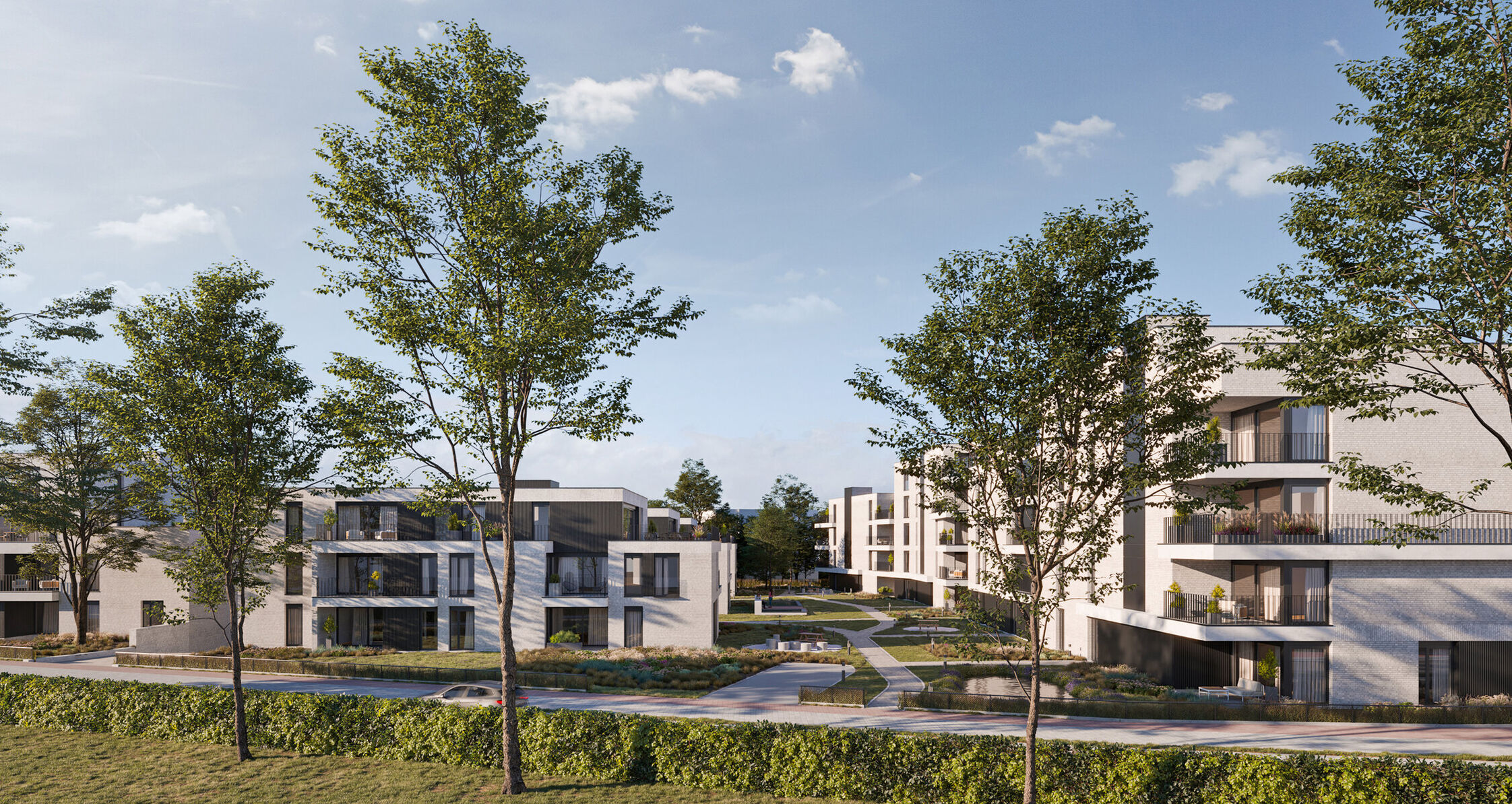 Er werd gekozen voor een diversiteit aan appartementen met ook kleinere woonoppervlaktes zodat iedereen zijn gading kan vinden. De 6 aparte woonblokken zorgen voor voldoende rust & privacy en vormen een mooi harmonieus geheel.