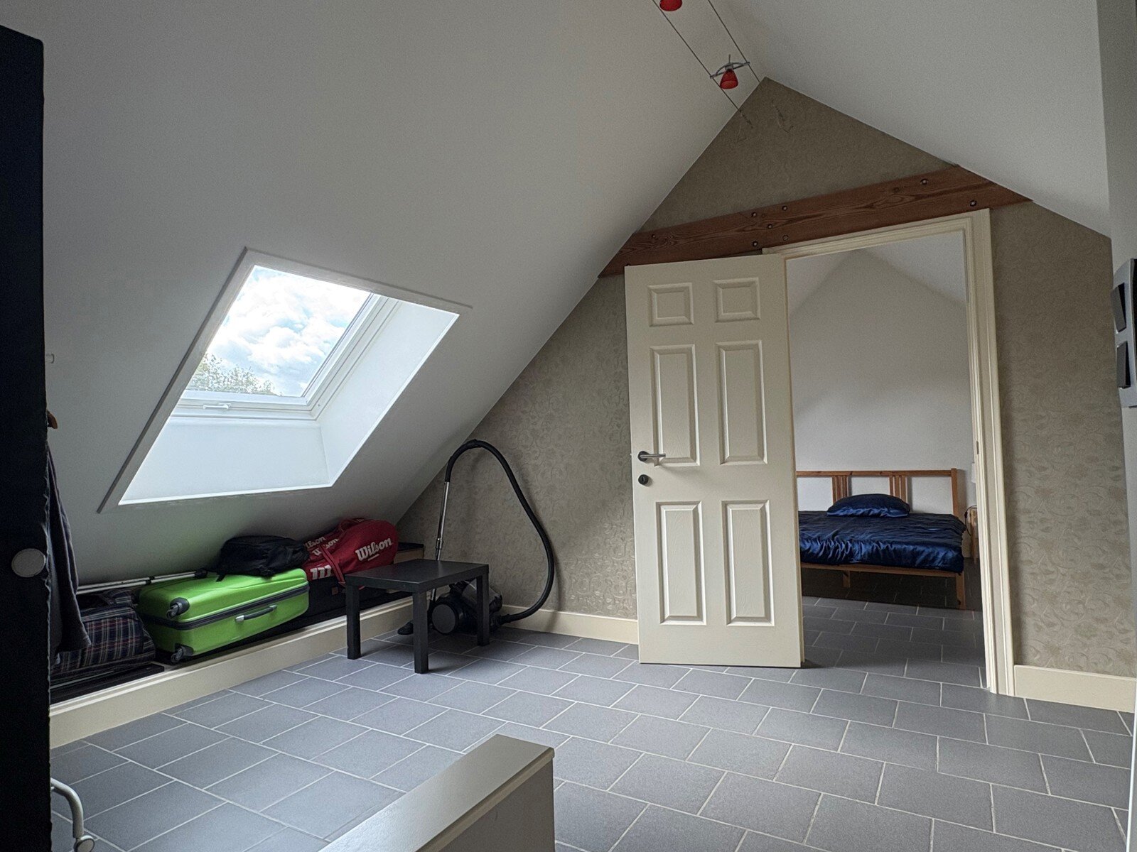 - Berging/dressing (13.30m²): 3.63x3.66m met toegang tot de slaapkamer. Tegelvloer.