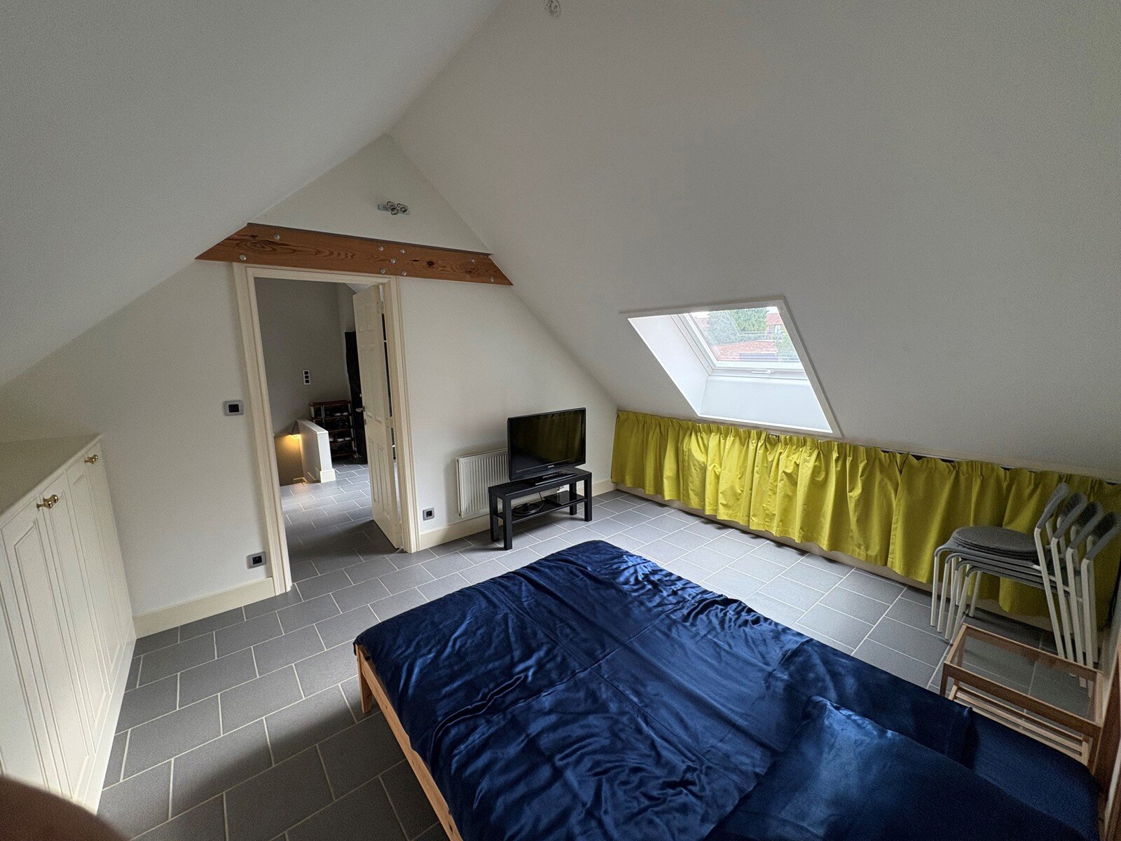 - Slaapkamer (13.50m²): 3.76x3.58m, voorzien van een radiator en tegelvloer.