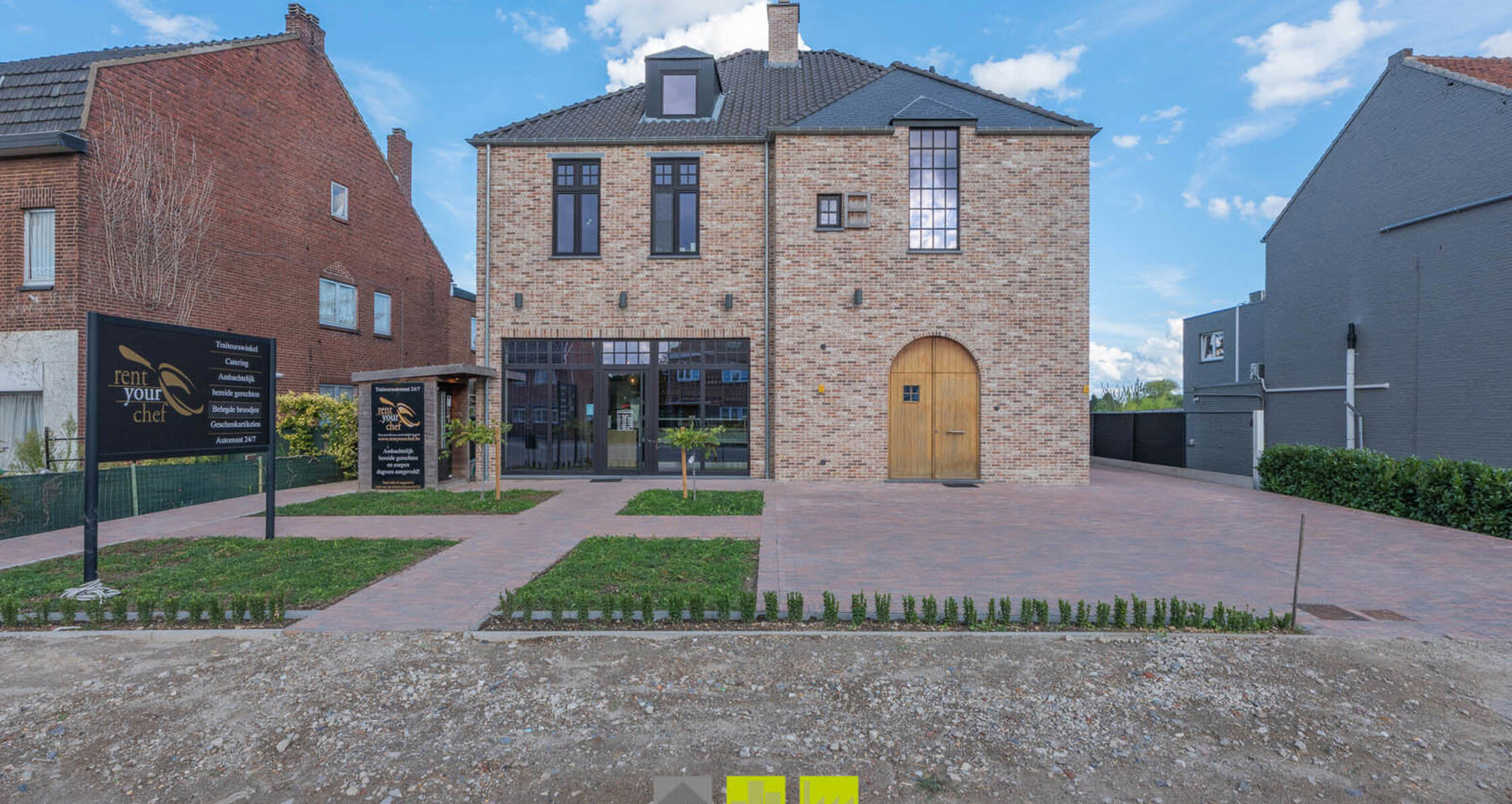 Ingang/voordeur aan de rechterzijde van het pand.