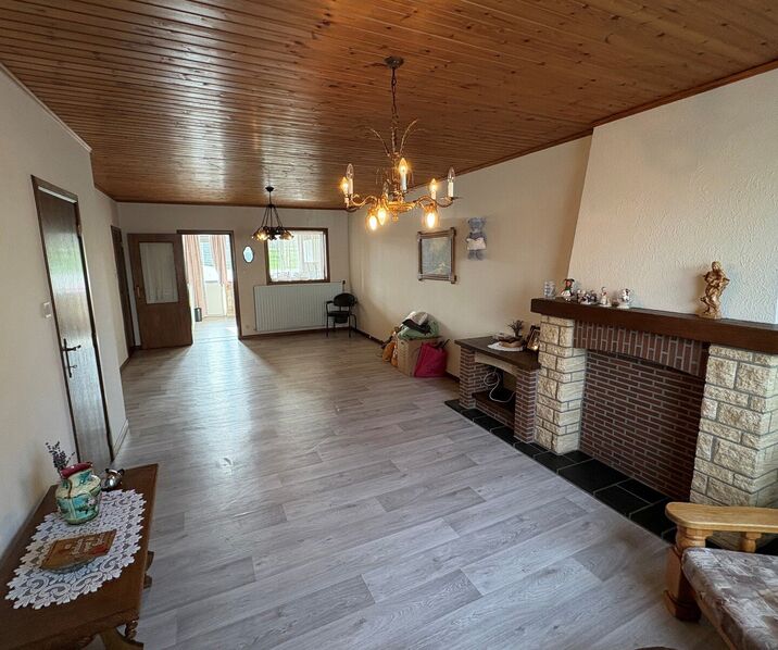 - Leefruimte 1 (36m²): 9.00x4.00m, voorzien van een schouw en laminaatvloer. Raam met dubbel glas aan de straatzijde.