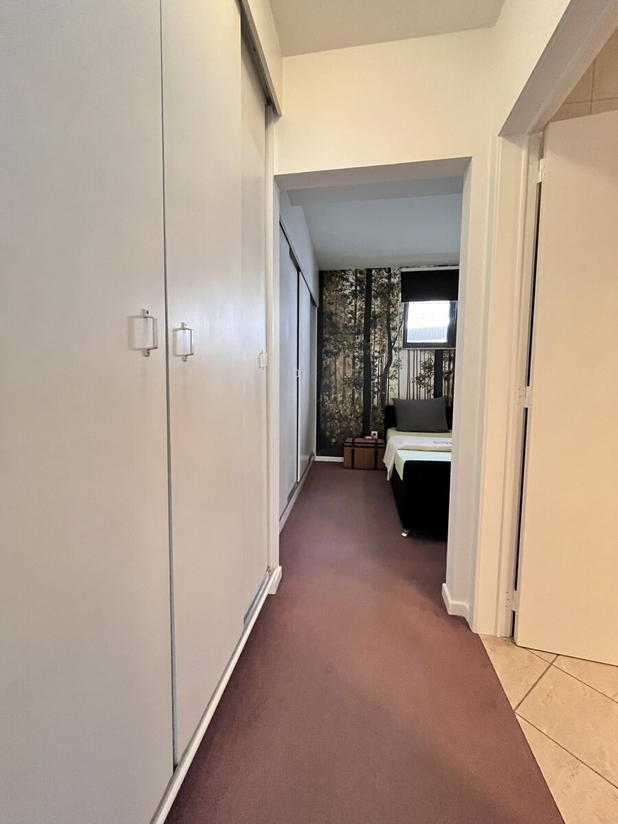 - Slaapkamer: doorgang naar badkamer, tapijt.
