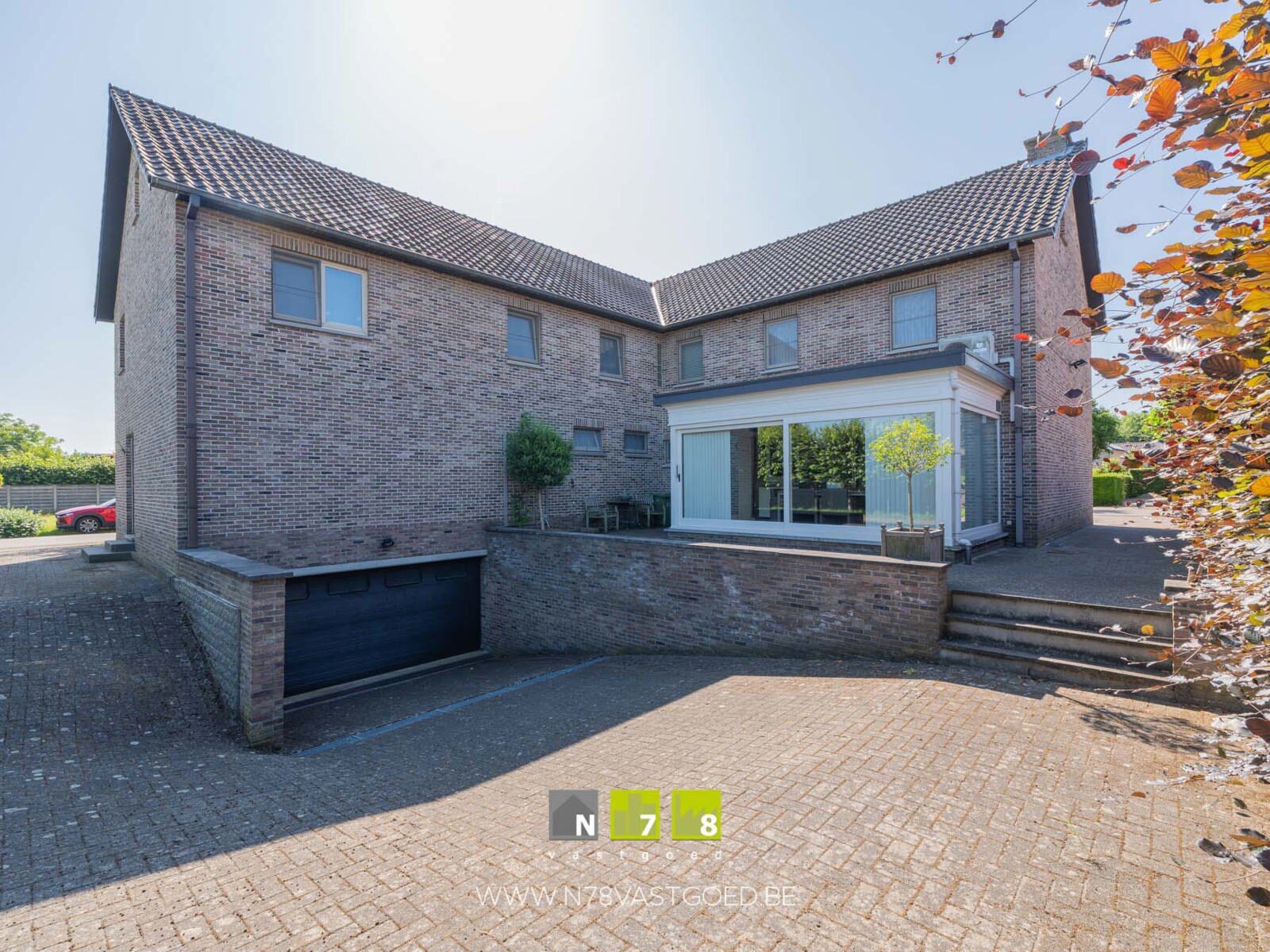 - Beklinkerde oprit met aan de achterzijde toegang tot de inpandige garage.
