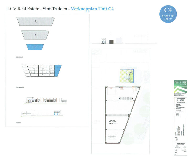 - kantoor (A1.2) met een oppervlakte van 178m² samen met unit A.13 met een oppervlakte van 437m² en een mezzanine van 173m² en 7 parkeerplaatsen: €951.530 zonder kosten en supplementen