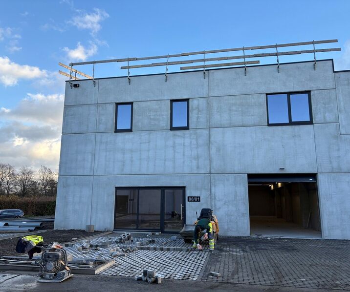 CONCIËRGEWONING 133M² MET TERRAS 82M² EN EEN AANSLUITENDE KMO-UNIT MET EEN OPPERVLAKTE VAN 214M² EN 4 PARKEERPLAATSEN GELEGEN IN HET NIEUWE BEDRIJVENPARK TER BIEST