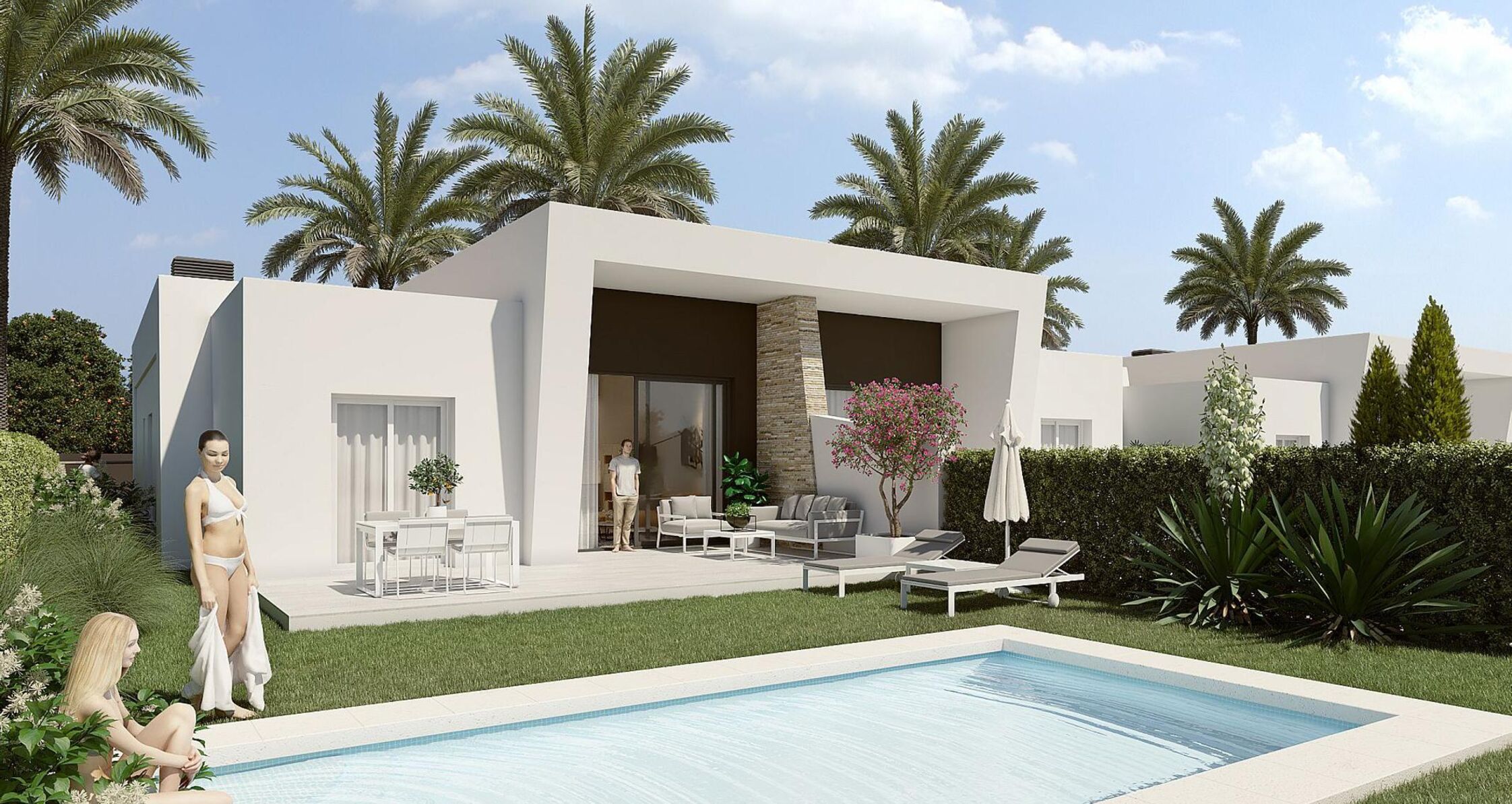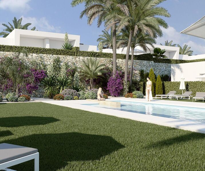 HALF-OPEN NIEUWBOUWVILLA'S MET PRIVE ZWEMBAD , 3 SLAAPKAMERS EN 2 BADKAMERS GELEGEN IN HET RUSTIGE ALGORFA NABIJ LA FINCA GOLF