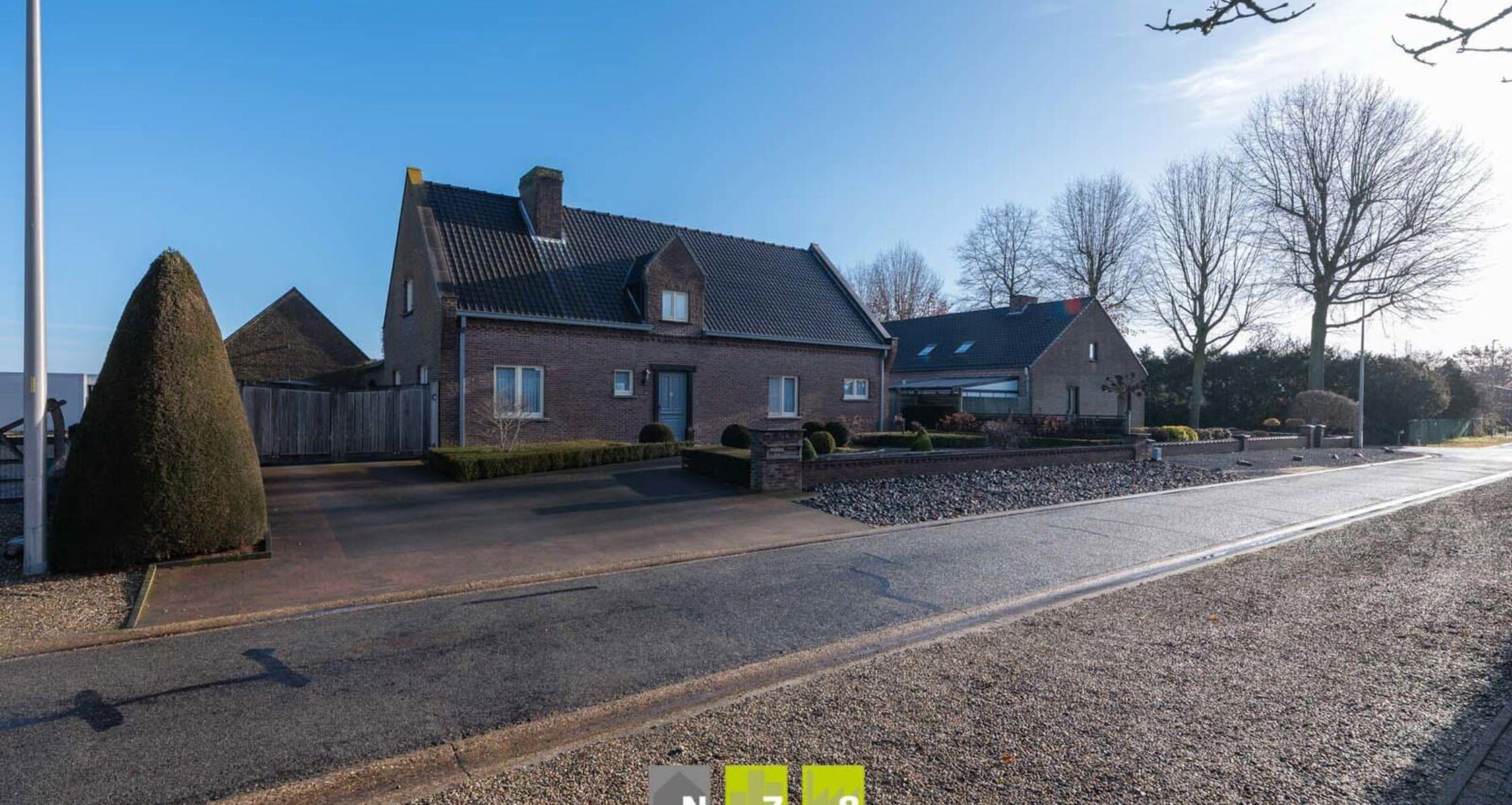 - Ruime oprit naar de garage met steentjes.