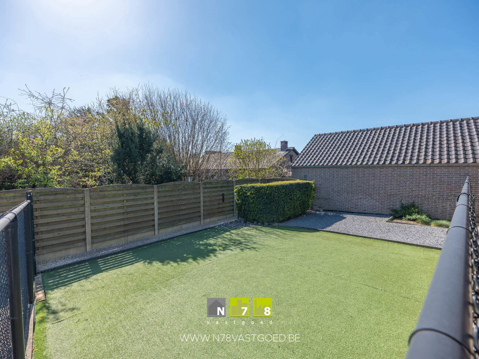 - Tuingedeelte met gedeeltelijke verharding en gedeeltelijk kunstgras.