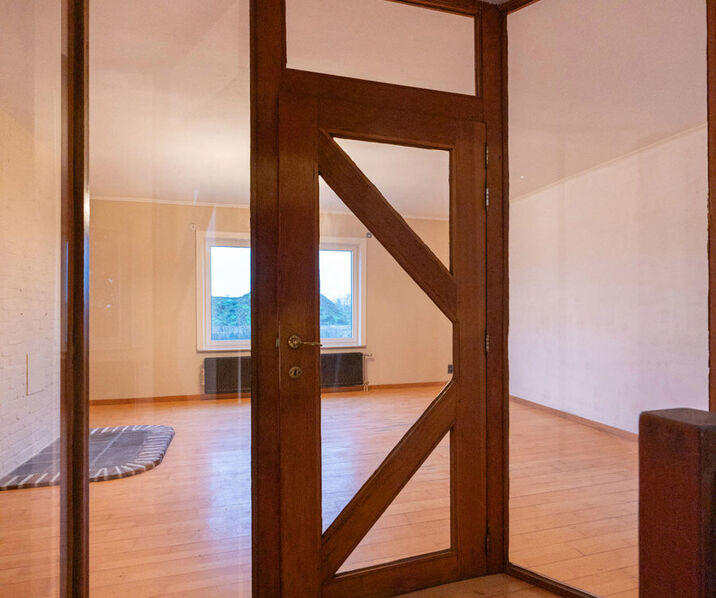 - Inkomhal (2,65m x 1,60m = 4,24m²): trap naar 1ste verdieping, tegelvloer.