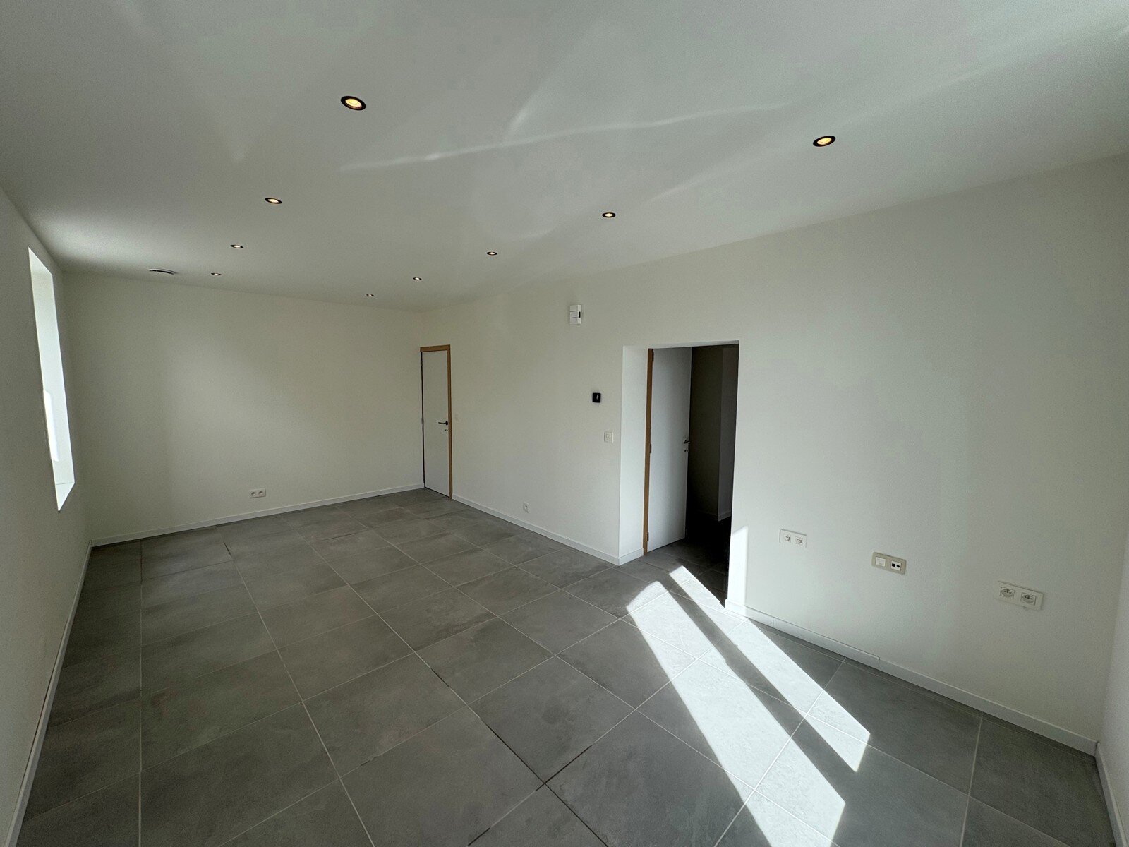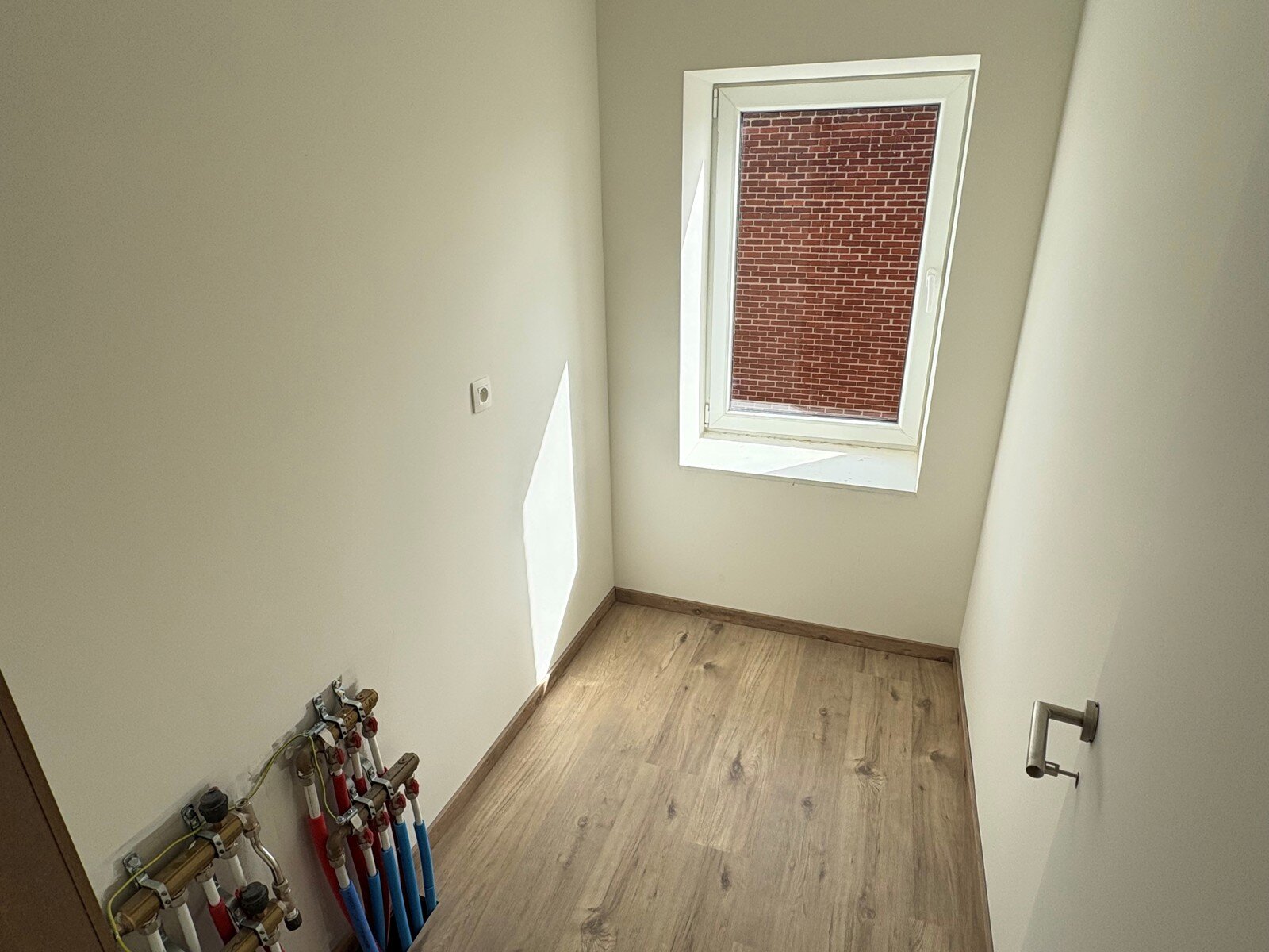 GELIJKVLOERS - overal vloerverwarming en keramische tegelvloer: - Centrale inkomhal (1.60m²): 1.35x1.20m. - Leefruimte (22.50m²): 6.60x3.40m voorzien van inbouwspots. - Keuken met eetplaats (18m²): 7.00x2.60m, geïnstalleerd met boven- en onderkasten, een granieten werkblad, een ingebouwde koelkast en diepvries, zowel een microgolfoven als een warmeluchtoven, keramische kookplaat, dampkap met filter en een spoelbak. Ruimte nog voorzien van een dubbel openzwaaiende buitendeur en ruimte voor een tafel te plaatsen. - Berging/wasplaats (3m²): 2.25x1.50m met aansluiting wasmachine. Hier staat ook de warmtepomp en is de toegang tot de kelder. - Apart gastentoilet (0.85m²): 1.40x0.60m, voorzien van een hangtoilet en handenwasser.