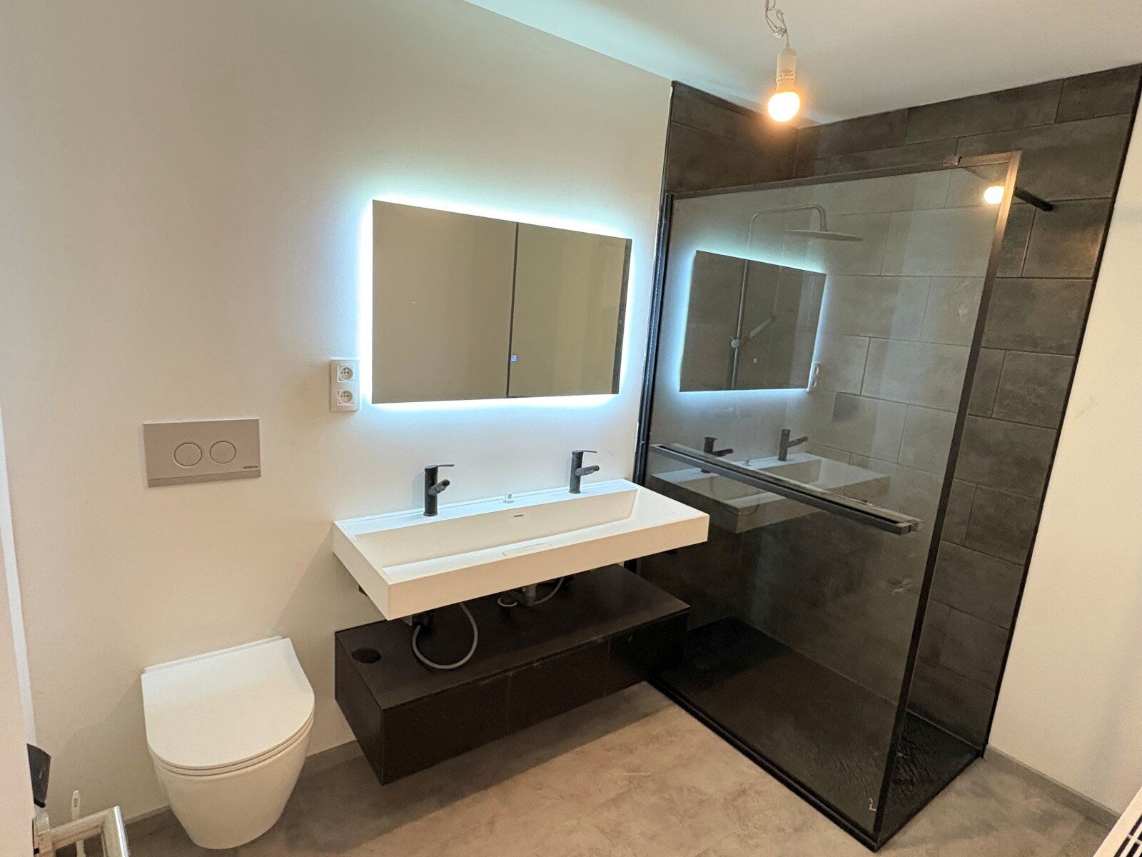VERDIEPING +01 - volledig vernieuwde houten tussenvloer en overal laminaatbevloering: - Nachthal/overloop (6.50m²):4.35x1.50m met een vaste trap naar de zolderverdieping. - Badkamer (5m²): 2.80x1.90m, uitgerust met een inloopdouche, hangtoilet en badkamermeubel met dubbele lavabo. - Slaapkamer 1 (14.50m²): 3.80x3.80m, voorzien van een radiator. - Slaapkamer 2(10m²): 3.70x2.70m, voorzien van een radiator. - Slaapkamer 3(10m²): 3.80x2.60m, voorzien van een radiator. - Berging/dressing (3m²): 2.25x1.40m.