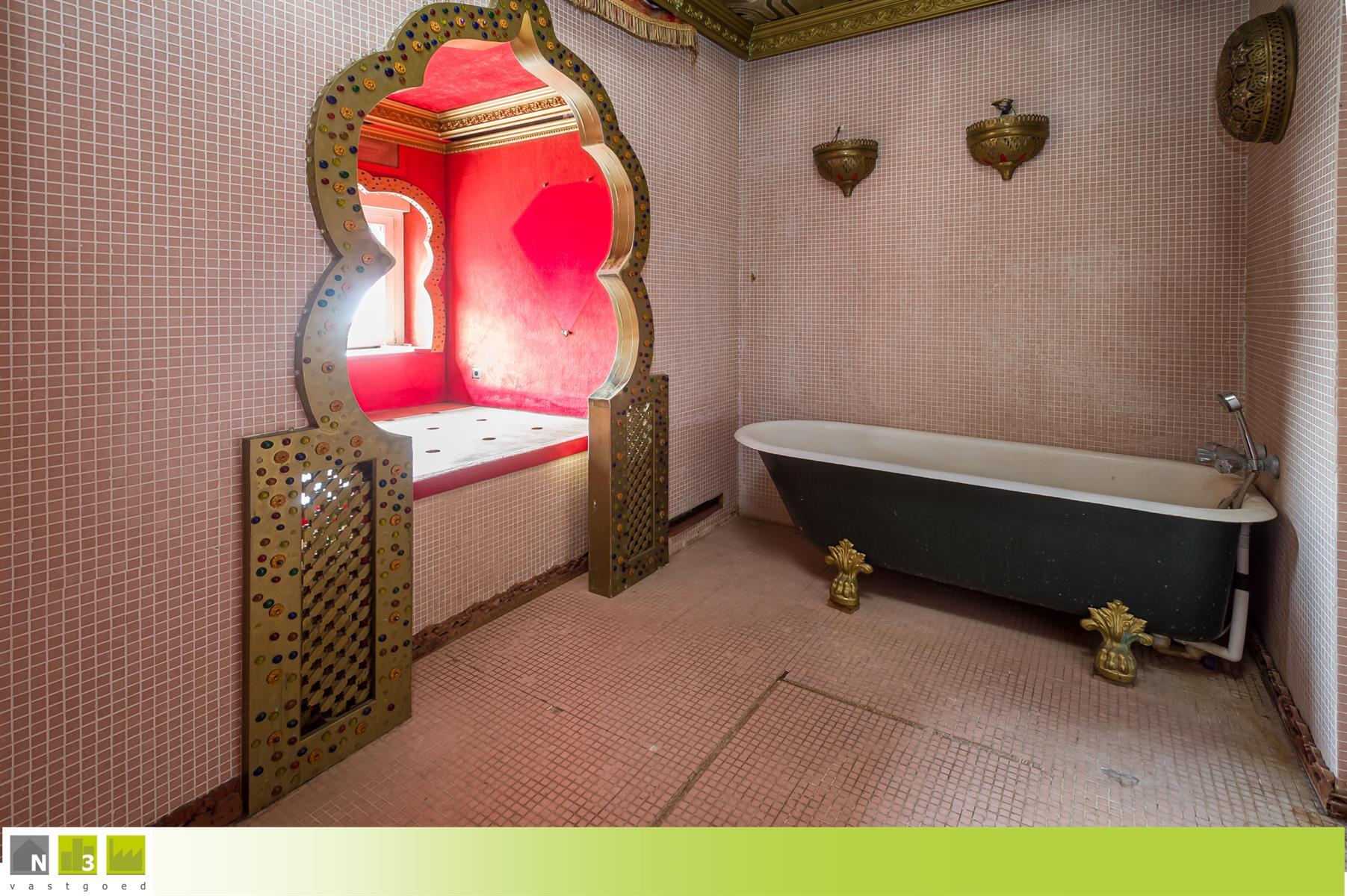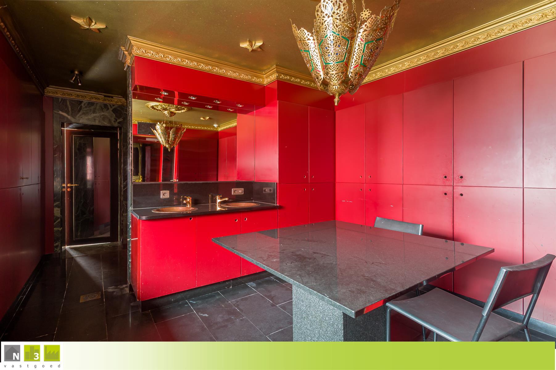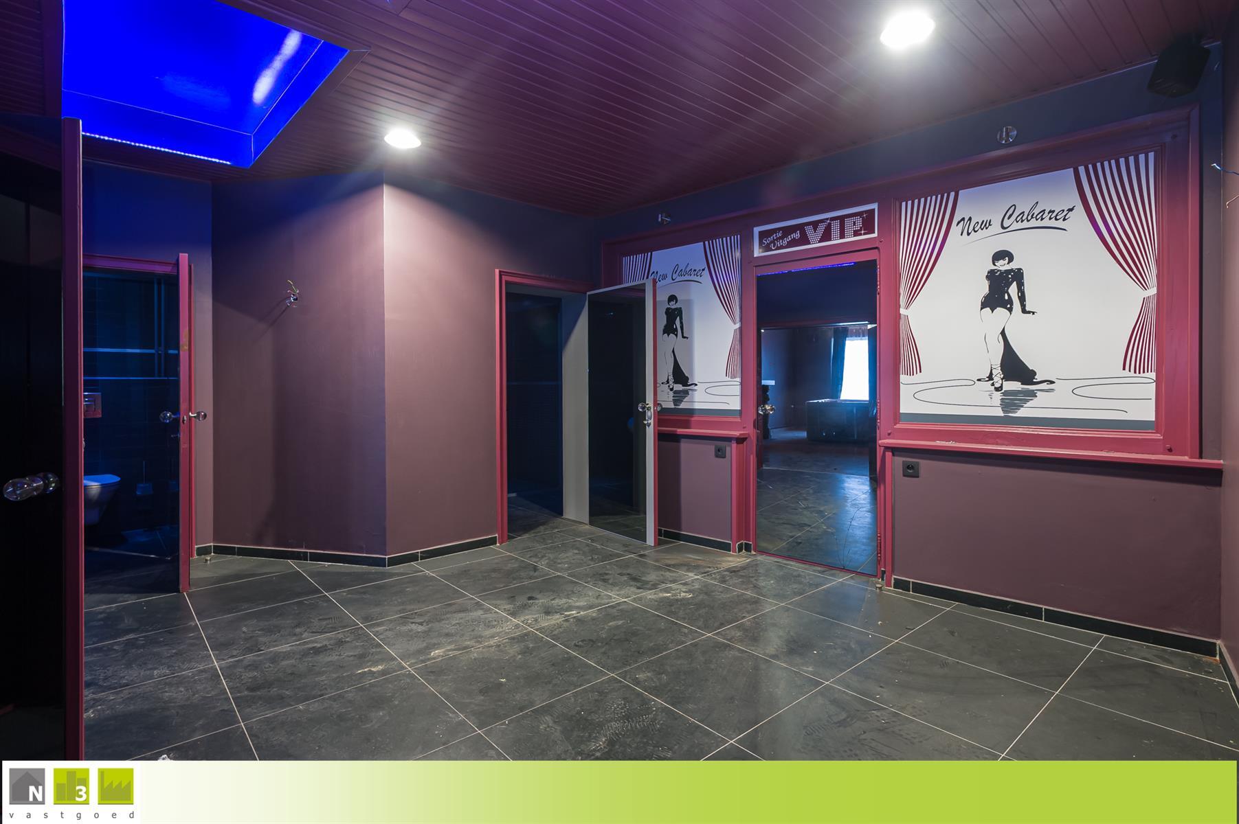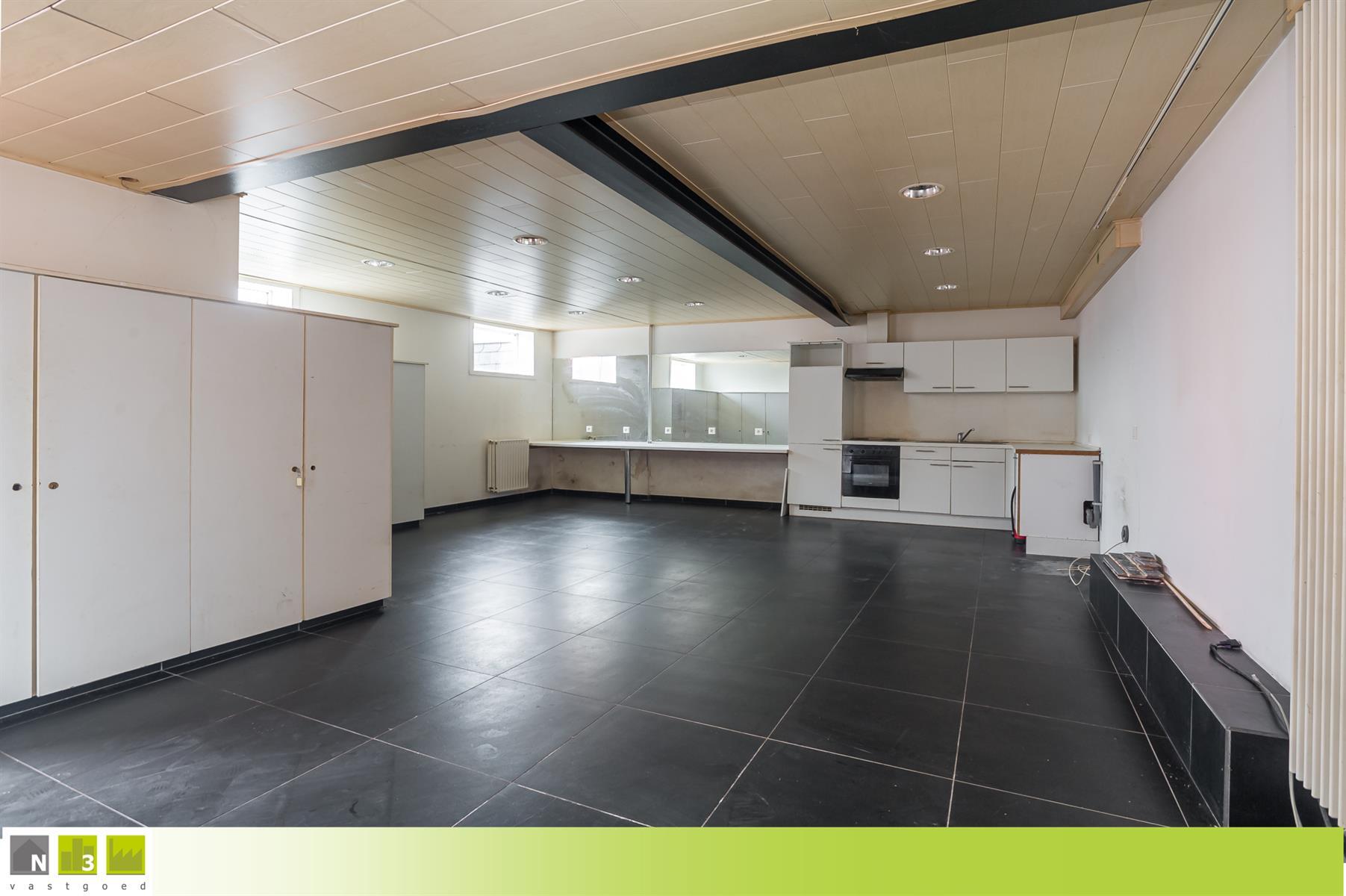 Bestaande uit een kelder, handelsruimte/bar van 60m² (13.00x4.75m) met 3 vitrines en een inkomdeur, 2 WC's, sas met trap naar de kelder en naar de bovenverdieping, geïnstalleerde keuken, ruime douche, refter/eetzaal met nog een keukentje, op de verdieping 3 slaapkamers met elk hun sanitair, nog een apart toilet en de nachthal.