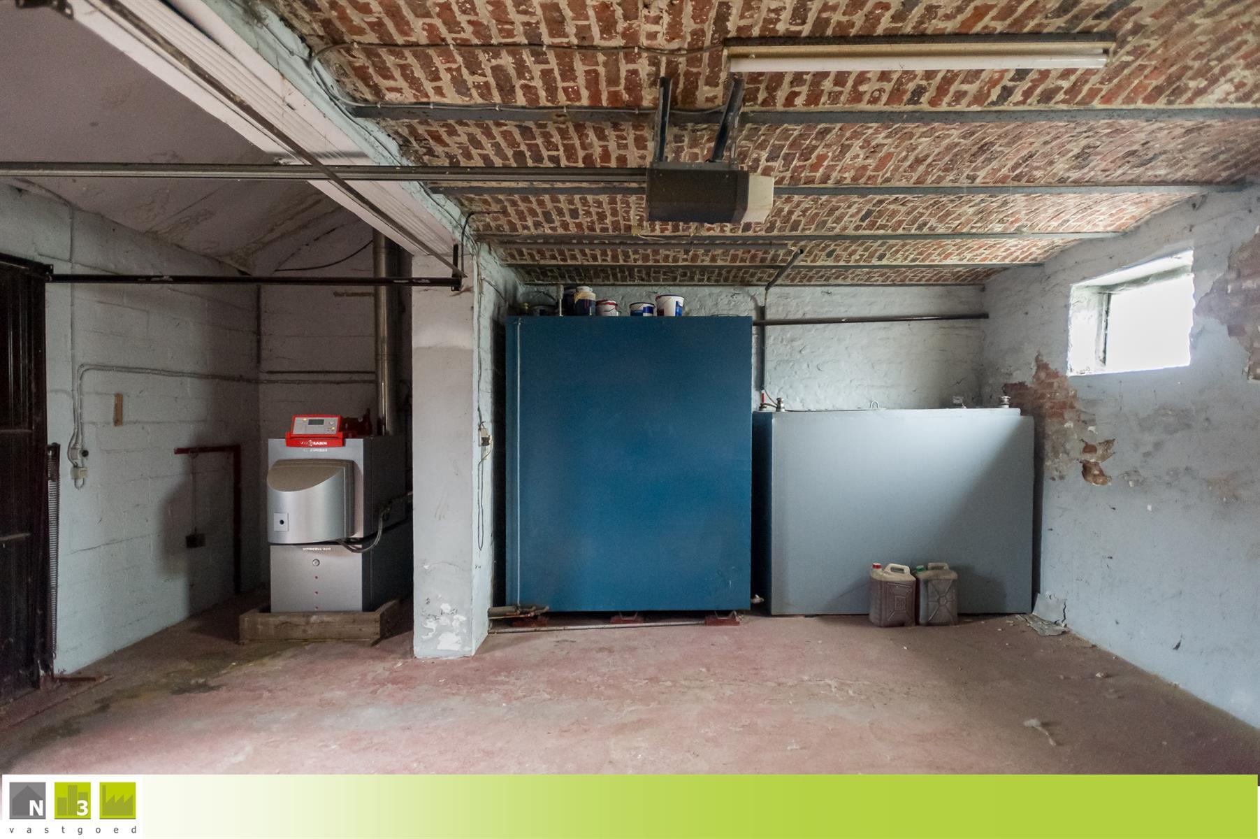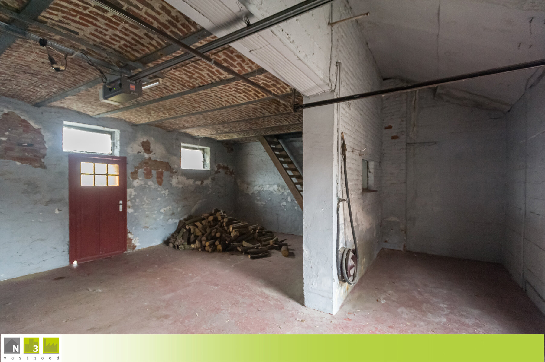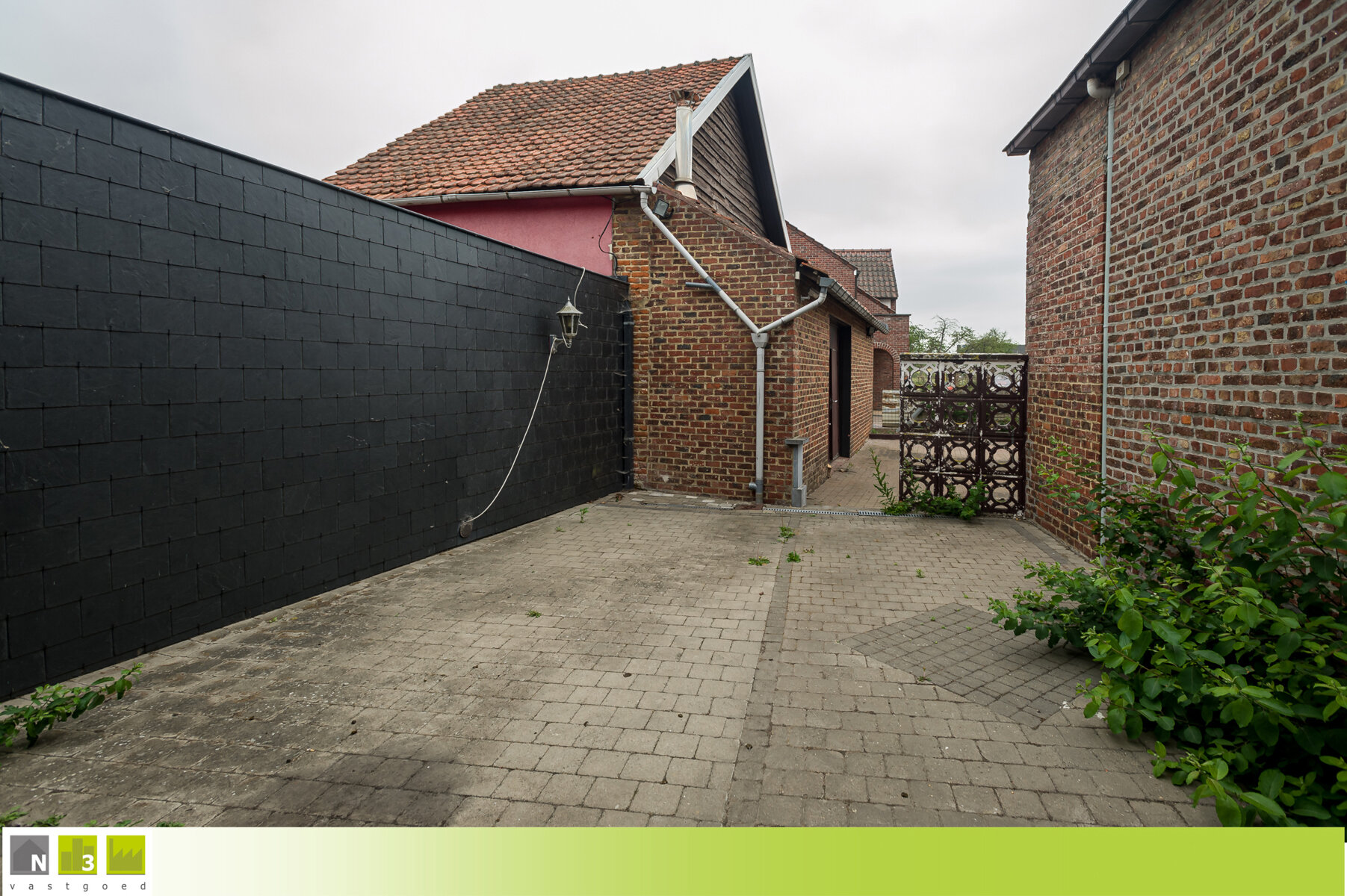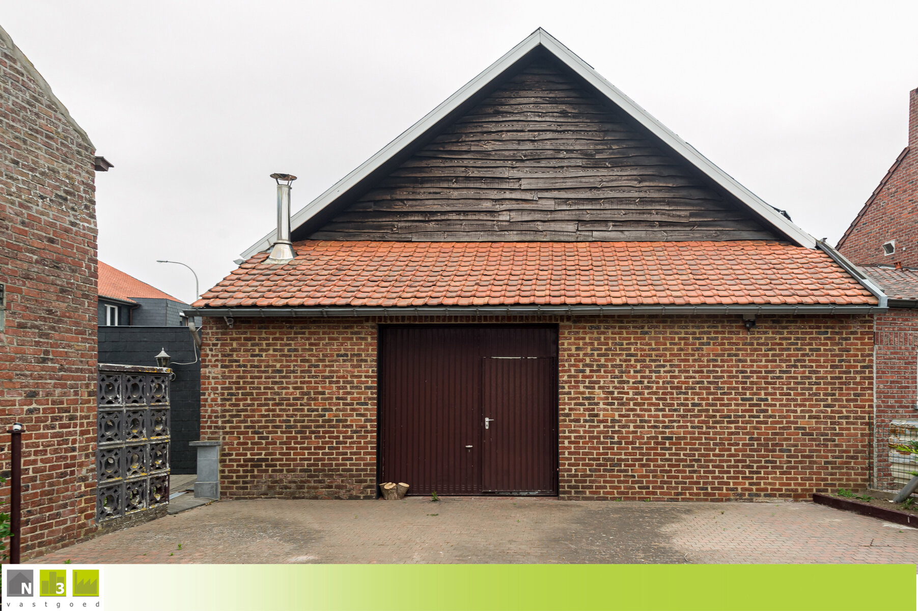 Achter de woning, eveneens bereikbaar via de Oude Borgwormseweg, bevinden zich nog een ruime garage van 60m² met automatische kantelpoort en een zolder boven, een beklinkerd terras van 35m², een volledig ommuurde tuin van ongeveer 145m² en een beklinkerde parking van ongeveer 150m², afgesloten met een automatische poort. De woning is uitgerust met CV op mazout en gedeeltelijk nieuwe ramen met dubbel beglazing.