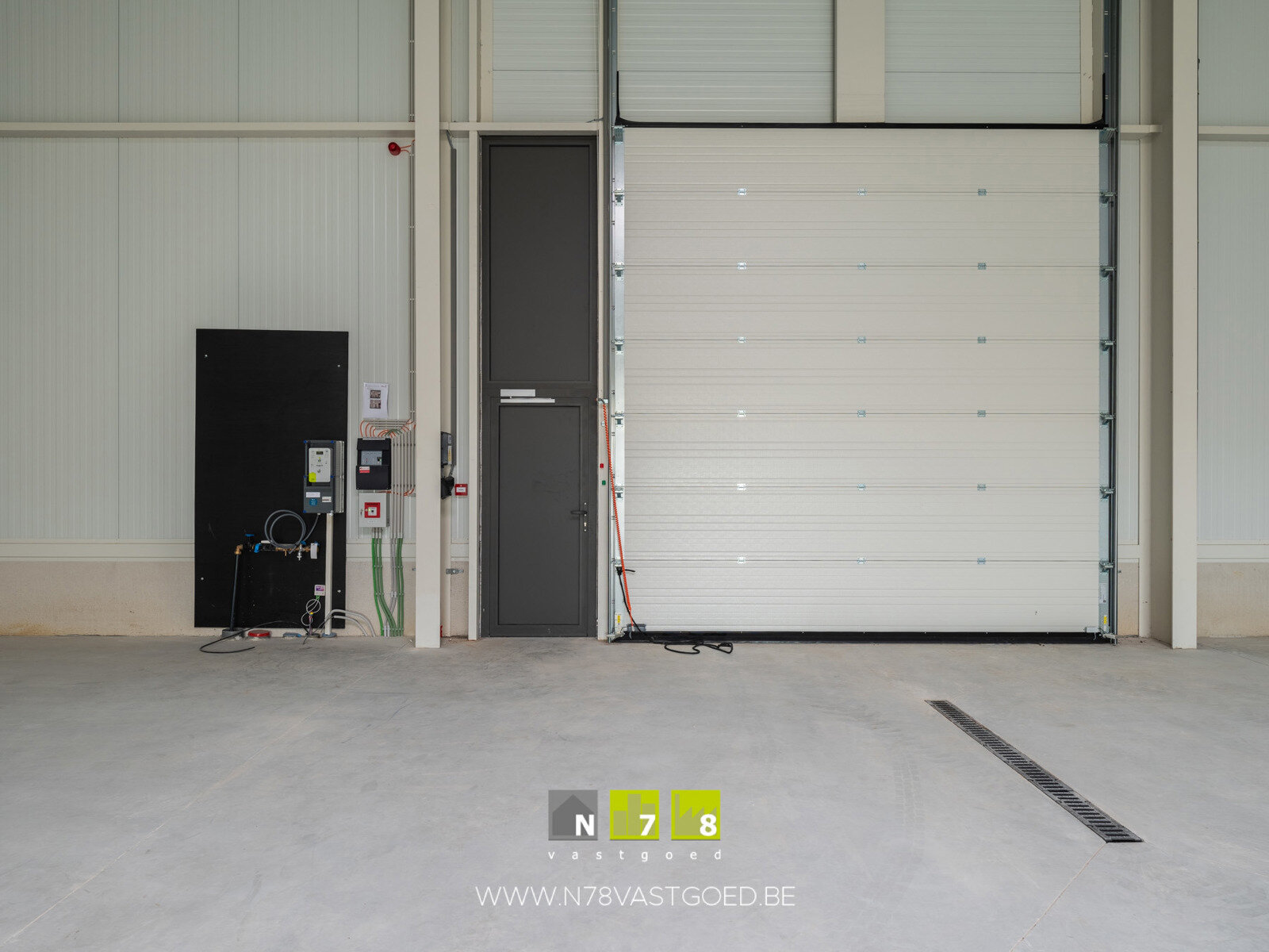 KENMERKEN - oppervlakte hal: 379m² - 1 sectionaalpoort (4.00m breed x 4.20m hoog) - gevelbekleding: geïsoleerde sandwichpanelen - gepolierde betonvloer - vloer geïsoleerd - verkoop in CASCO staat