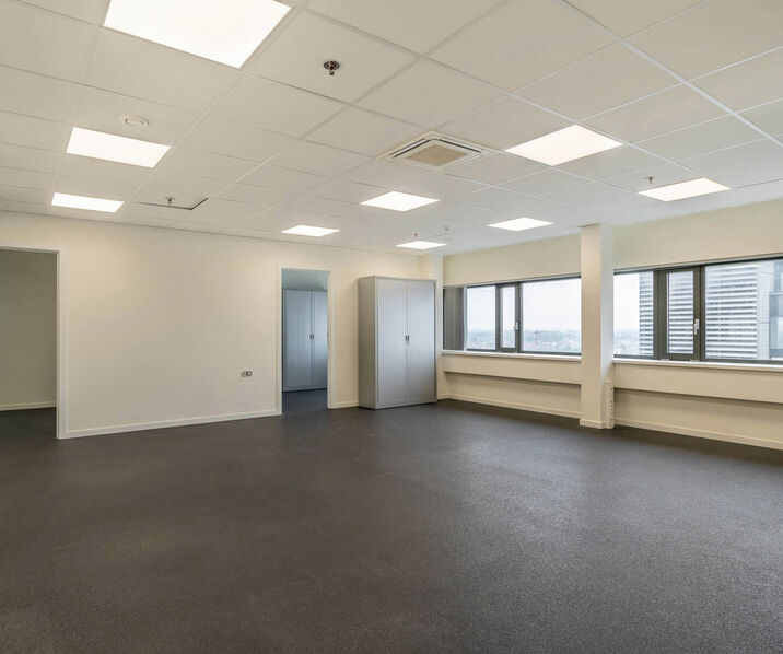 - De kantoorruimte heeft een totale oppervlakte van 114m².