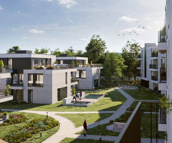 Er werd gekozen voor een diversiteit aan appartementen met ook kleinere woonoppervlaktes zodat iedereen zijn gading kan vinden. De 6 aparte woonblokken zorgen voor voldoende rust & privacy en vormen een mooi harmonieus geheel.