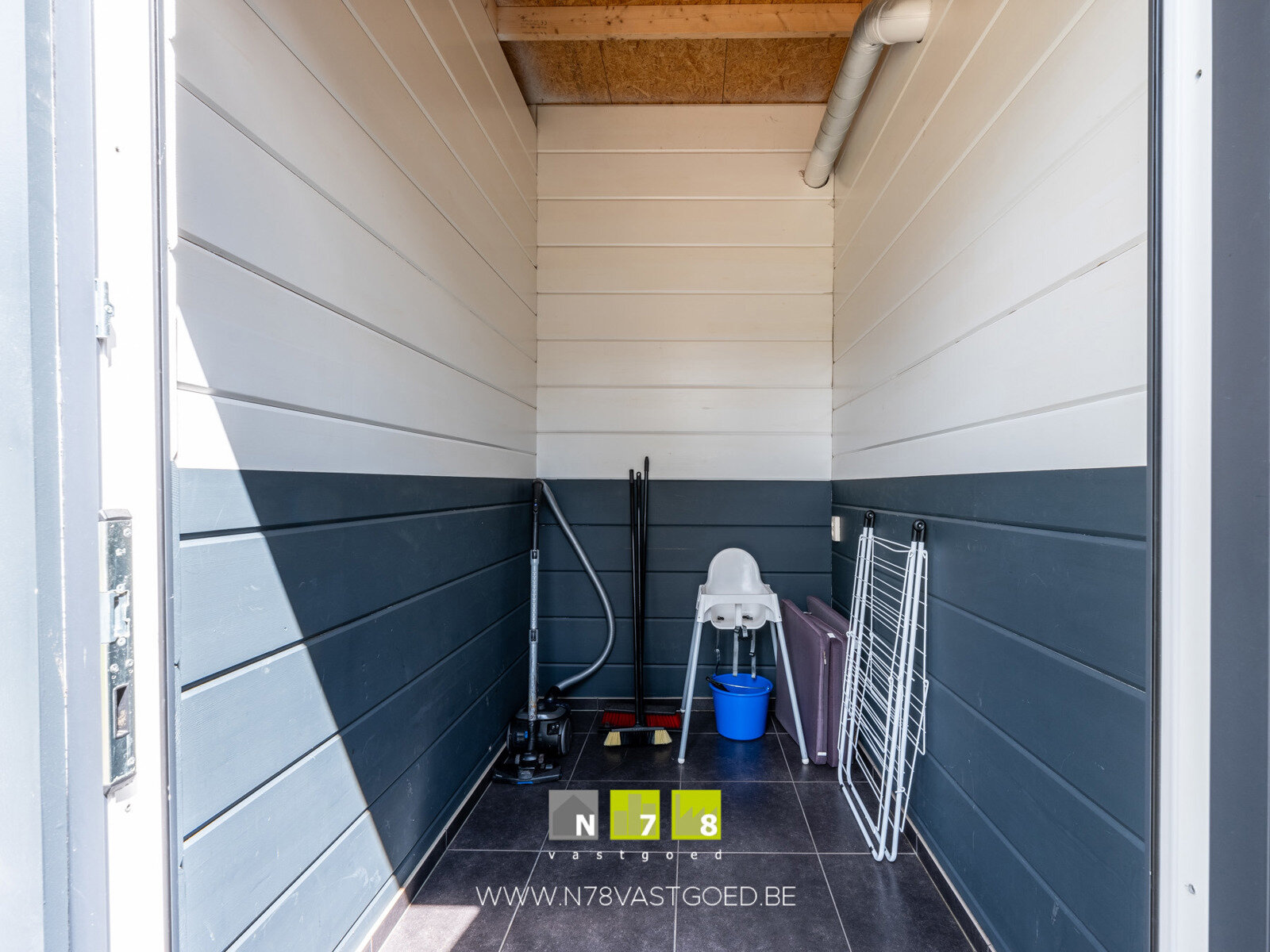 - Berging: wellnessruimte met douchecabine+sauna, tegelvloer.